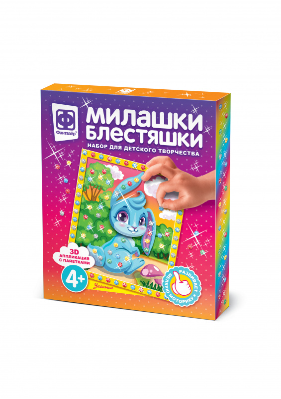 "Милашки-блестяшки" - это необыкновенный набор для творчества, который соединяет традиционные виды творчества, современные технологии и материалы. Все дети любят создавать что-то новое, лепить, раскрашивать, украшать. Этот развивающий набор объединяет сразу несколько любимых занятий. Сначала нужно создать объемную аппликацию, подбирая и наклеивая фигурные детали, а потом украсить ее блестящими пайетками. Так просто получить блестящий результат!