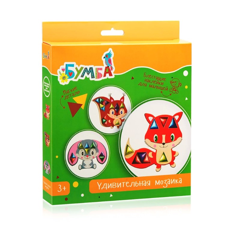 Работая с наклейками, дети тренируют пальчики и развивают мелкую моторику. Умение делать аппликации и простые поделки позже пригодится на занятиях в школе. А сам процесс создания красочных мозаик отлично развивает творческие способности и воображение. Порадуют и персонажи набора – это добрые животные, нарисованные в классическом мультипликационном стиле, с которыми можно играть и придумывать разные истории.