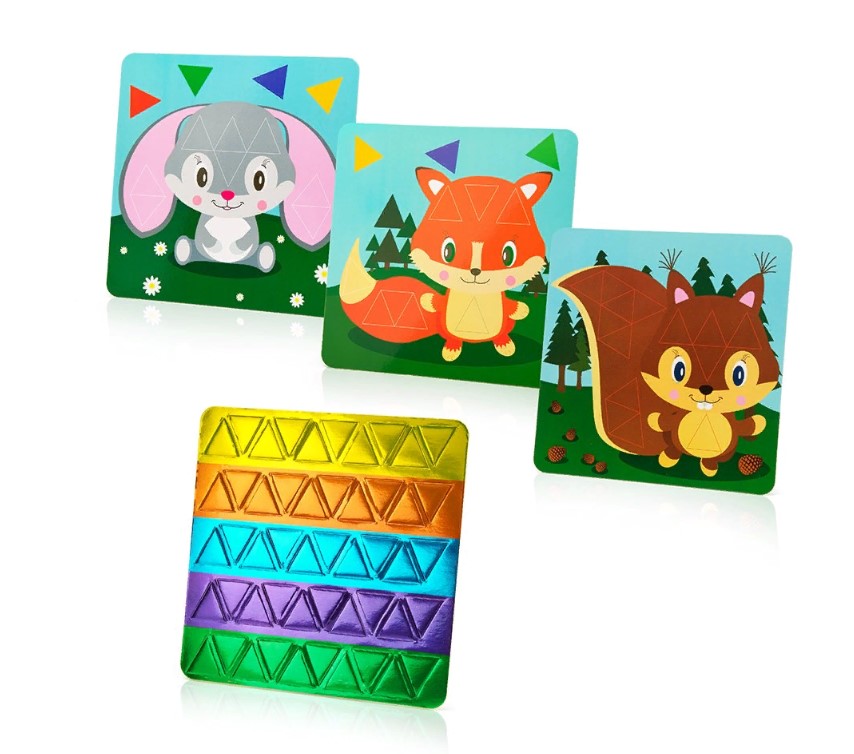 Данный набор поможет ребенку сделать свою разноцветную мозаику. В комплекте вы найдете 3 основы в виде забавных зверят, а также фольгированные наклейки разных цветов. Ребенок сможет приклеивать их в любом порядке, создавая яркие узоры. Наклейки мягкие на ощупь и очень прочные, а их блестящая поверхность красиво переливается.