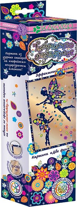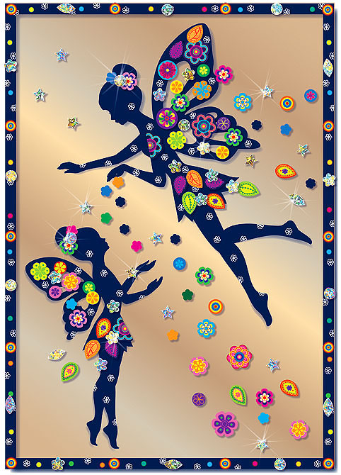 Картина-коллаж из стильных стикеров на затемнённом полупрозрачном пластике «Две феи» понравится ребёнку старше 8 лет: он легко наклеит на пластик части рамки, силуэты фей, а затем украсит изображение узорными и блестящими стикерами, как будто феи своим волшебством создают из воздуха красочные цветы. Особенно эффектно картина смотрится на фоне узора обоев, который слегка просвечивает сквозь полупрозрачный пластик кофейного оттенка. А в рамке из багета картина-коллаж превратится в настоящий шедевр и станет ярким акцентом в любом интерьере!