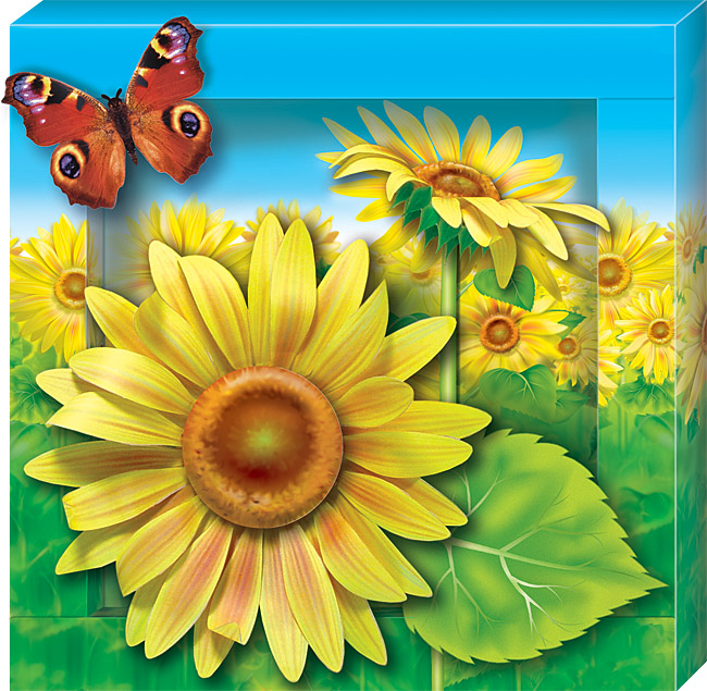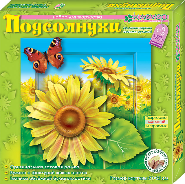 Подсолнух - символ солнца, лета, радости и жизни. Считается, что иметь в доме картину с подсолнухом - к достатку и здоровью. Картину «Подсолнухи» дети старше 10 лет и взрослые могут сделать своими руками в технике бумагопластики с элементами декорирования и объёмной аппликации: вырезать, изогнуть и склеить лепестки цветков из тонкой цветной бумаги при помощи тонкого двустороннего скотча, изготовить декоративную сердцевину подсолнуха из крупного и пряжи, наклеить рамки на фон, наклеить детали на картину с помощью объёмного двустороннего скотча
