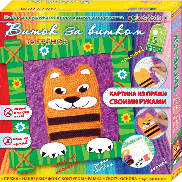 Набор для творчества. Набор для изготовления картины из пряжи *Тигренок*