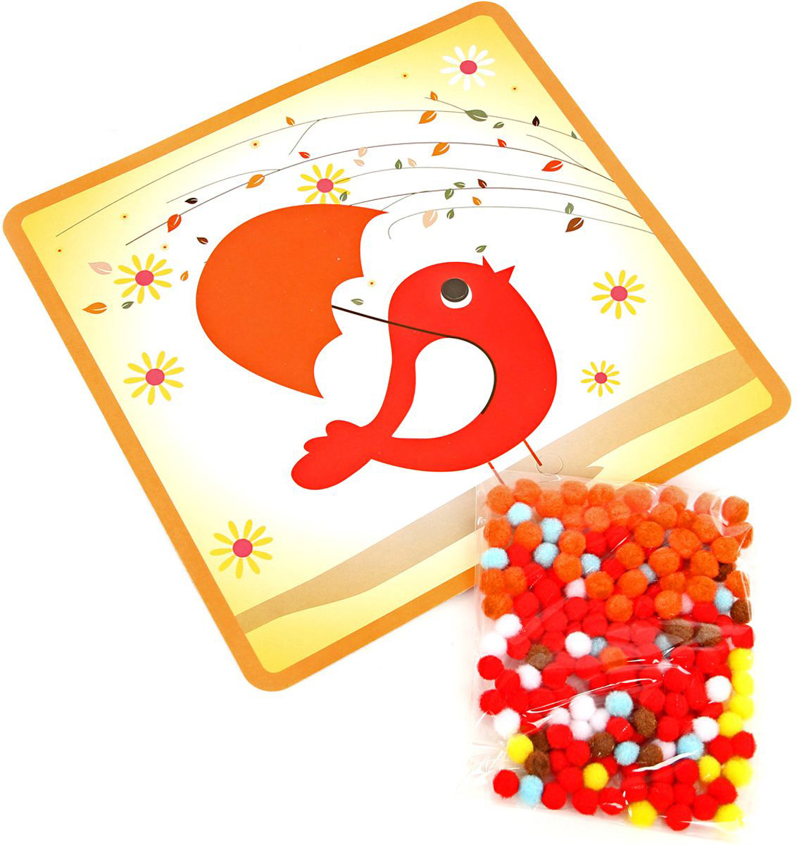 - В наборе: картина с клейким слоем, разноцветные помпоны