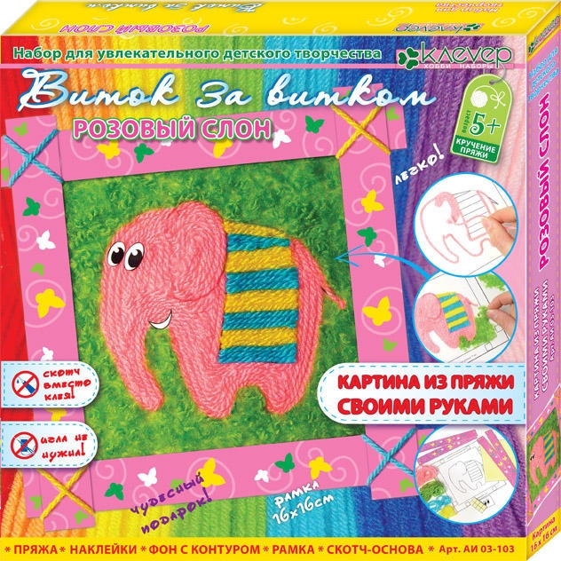 Набор для творчества. Набор для изготовления картины из пряжи *Розовый слон*