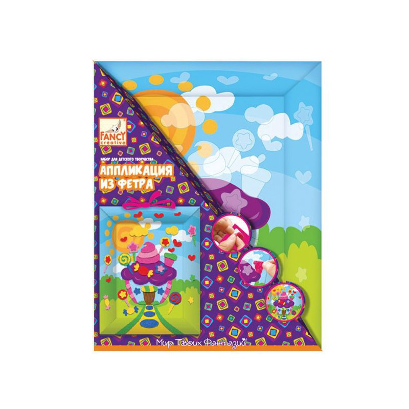 Набор ФЕТРУШКИ предлагает ребенку сделать оригинальную аппликацию из готовых самоклеящихся фетровых деталей, которые надо наклеивать на плотную картонную основу с нарисованным фоном и рамкой.