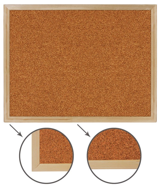 Пробковая доска позволит разместить объявления при помощи кнопок и офисных булавок. Широко используется в организациях разного рода деятельности.