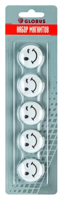 Набор магнитов 30 мм 5 штук, белые Globus "Смайлики"
