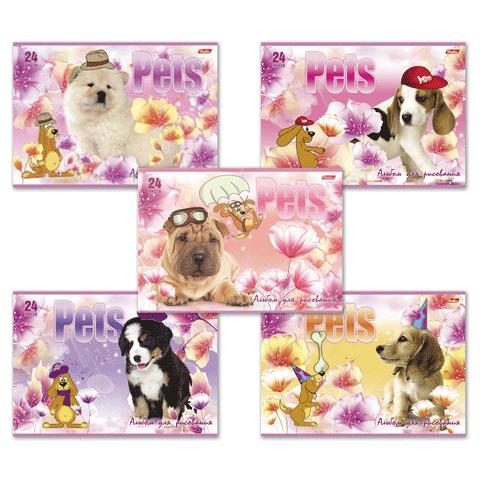 Альбом для рисования, А4, 24 листа, обложка картон, HATBER "Любимцы", 24А4В, A090770