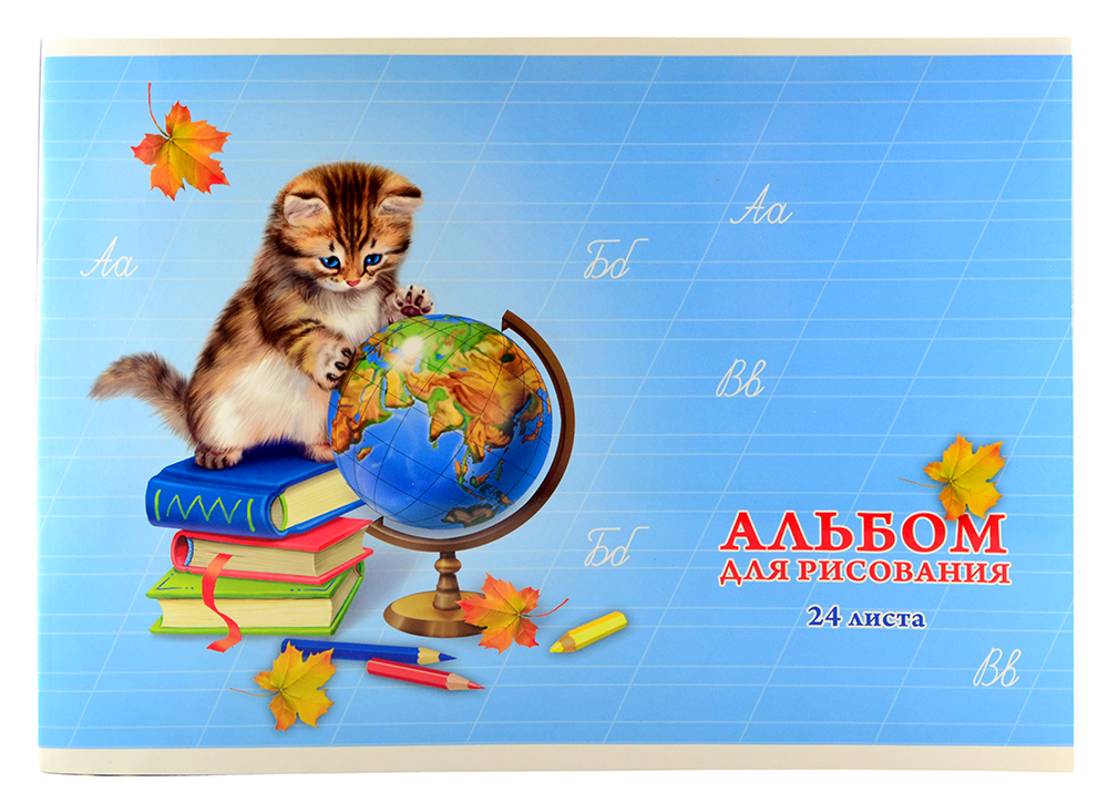Альбом для рисования 24 листа А4 "Котенок и глобус" скоба