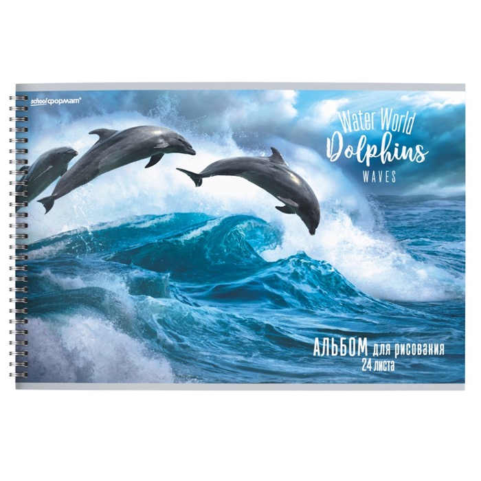 Альбом для рисования А4 24 листа "Дельфины" на гребне