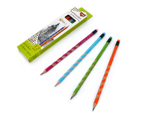 Карандаш чернографитный INTELLIGENT 12 штук с анатомическими выемками трехгранный с ластиком заточенный BT-182