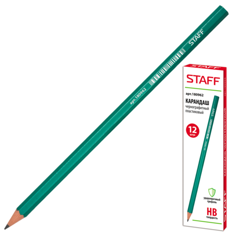 Карандаш чернографитный HB STAFF пластиковый, без ластика 12 штук