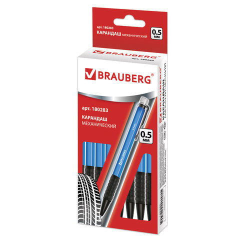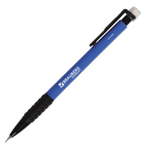Карандаш механический 0,5 мм BRAUBERG "Comfort" корпус синий, резиновый держатель, ластик