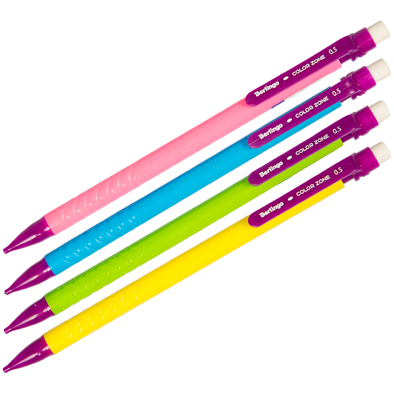 Карандаш чернографитный HB механический 0,5 мм Berlingo Coloe Zone с ластиком, 10 штук 242987