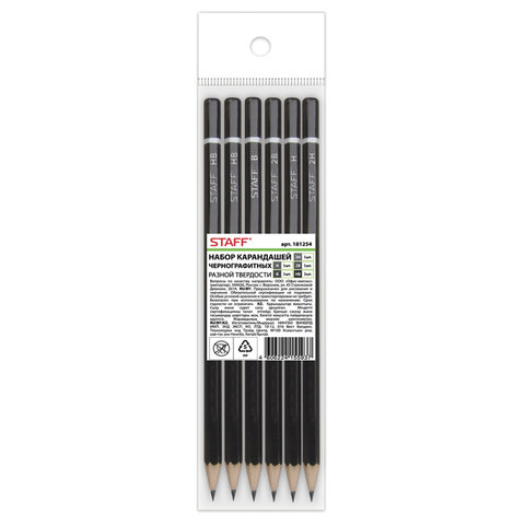 Набор чернографитных карандашей 6 штук 2Н-2В заточенные Staff*