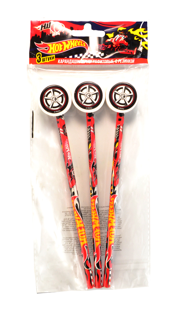 Карандаш с фигурной резинкой Mattel Hot Wheels 3 штуки 0705186