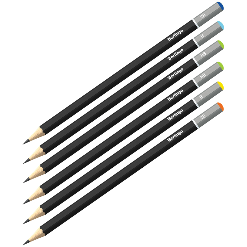 Набор карандашей чернографитных 6 штук 2Н-2В Berlingo, заточены 231869
