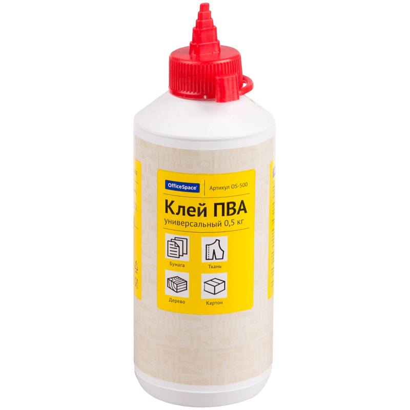Клей ПВА, 0,5 кг, универсальный, с дозатором OfficeSpace 268535