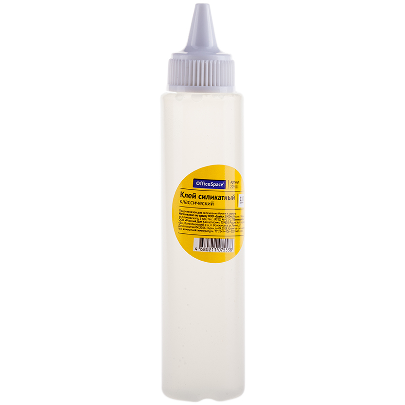 Силикатный клей в удобном пластиковом флаконе с завинчивающимся колпачком. Имеет отличную клеящую способность при работе с бумагой и картоном.