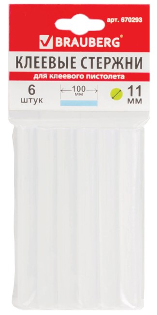 Клеевые стержни 11 мм, набор 6 штук, прозрачные Brauberg