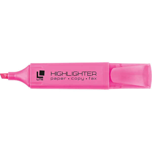 Маркер для выделения текста на всех видах бумаги, в том числе на бумаге для факса и пишущих машин. Корпус гладкий, матовый, пишущий наконечник устойчив к деформации, мягко скользит по бумаге, имеет клиновидную форму. Маркер позволяет провести линию толщиной от 1 до 5 мм. Цвет чернил: розовый.