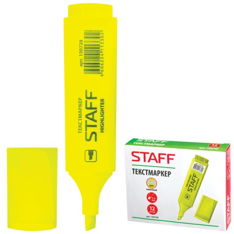 Маркер-текстовыделитель STAFF, скошенный наконечник 1-5 мм, лимонный, 150728