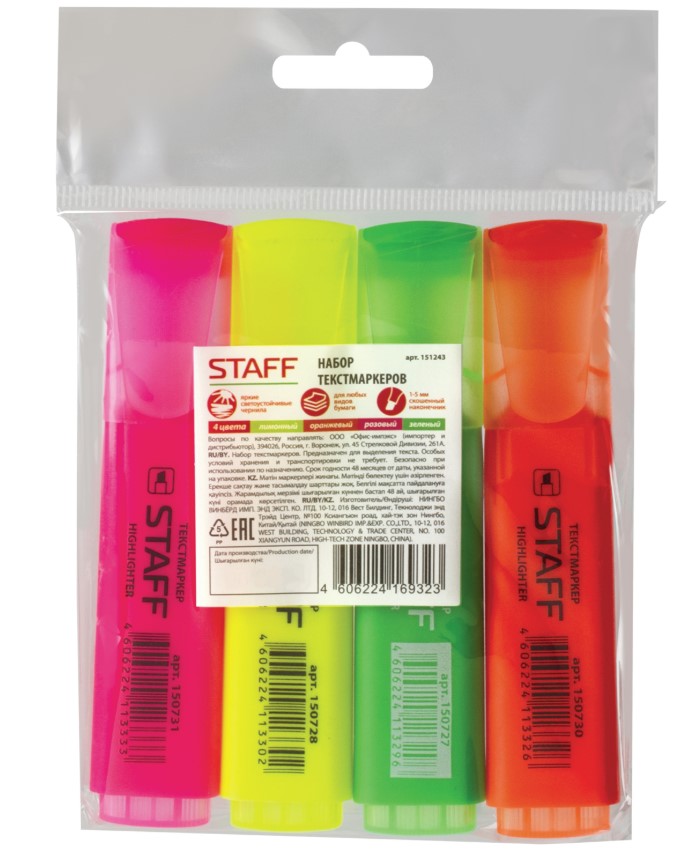 Текстовыделители 1-5 мм, 4 штуки Staff скошенный наконечник 151243