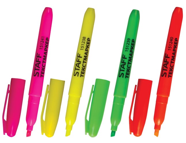 Предназначен для выделения текста на бумаге любого типа, включая факс-бумагу. Светоустойчивые чернила не выцветают даже на открытом солнце и незаметны при передаче текста по факсу. Текстмаркеры имеют яркий непрозрачный пластиковый корпус.