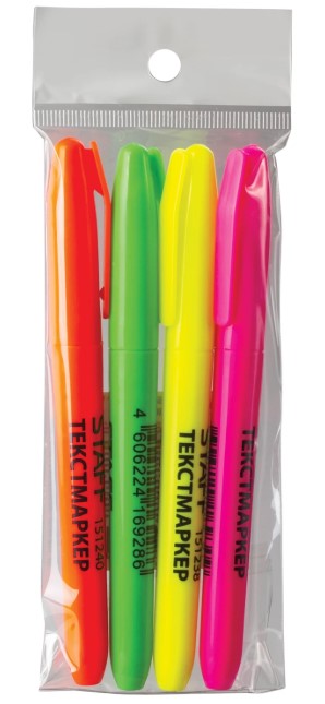Текстмаркеры набор 4 цвета, эргономичный корпус, скошенный наконечник 1-3 мм STAFF