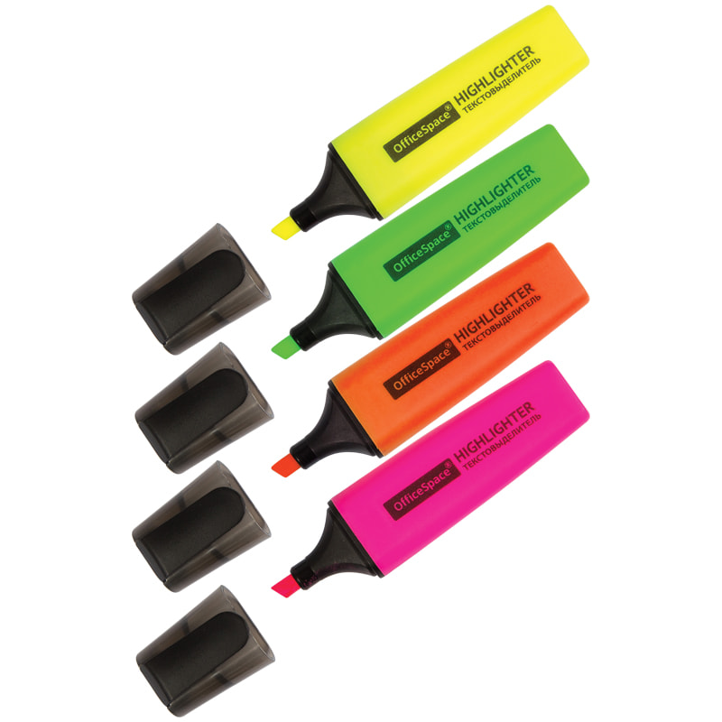 Набор текстовыделителей, 4 цвета, 1-5 мм OfficeSpace 255627