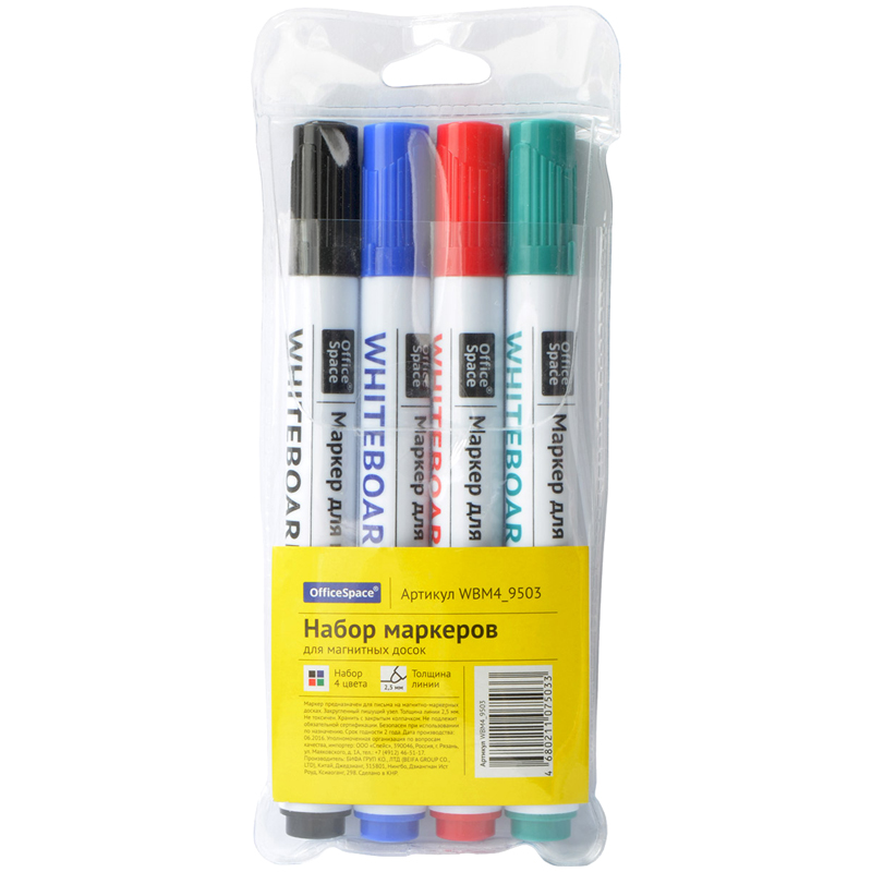 Набор маркеров для белых досок 4 цвета, OfficeSpace пулевидный, 2,5мм 228781