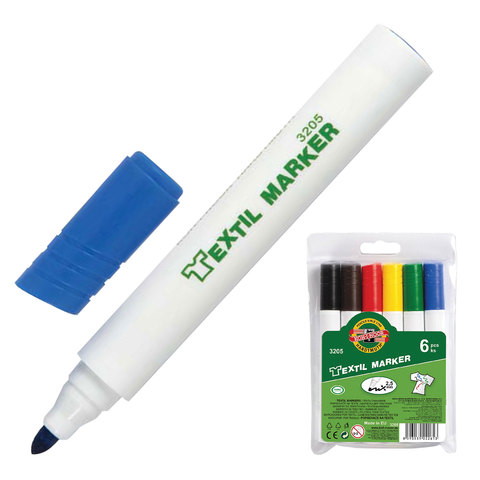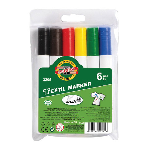 Маркер текстильный (для ткани) KOH-I-NOOR набор 6 штук круглый наконечник 773205JF01TE