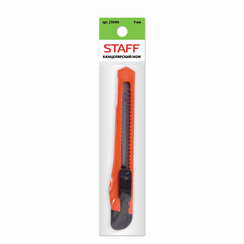 Нож канцелярский 9 мм STAFF, фиксатор, цвет корпуса в ассортименте
