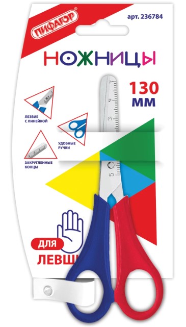 Ножницы 130 мм, для левши, ПИФАГОР, с линейкой