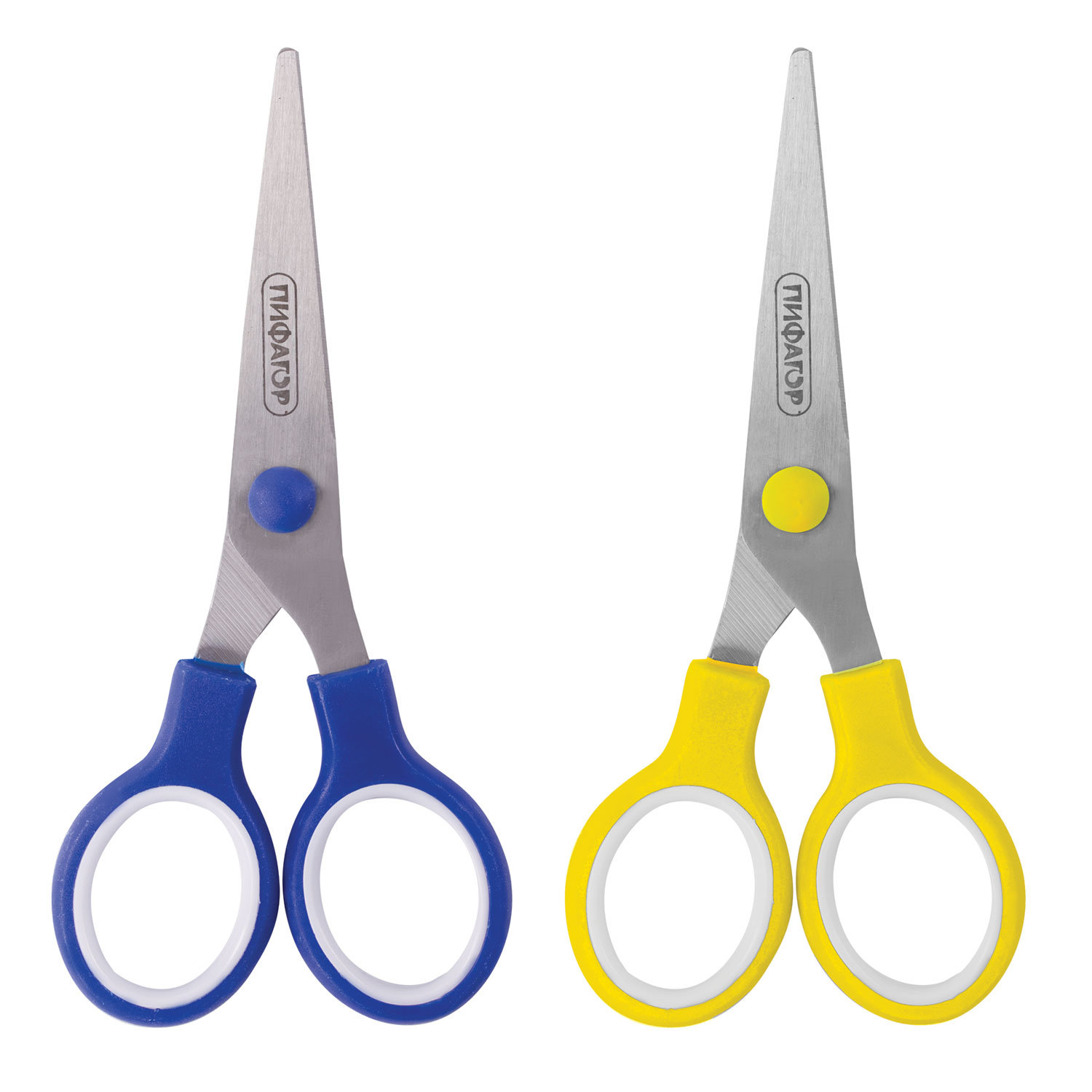 Ножницы ПИФАГОР, 130 мм, резиновые вставки, картонная упаковка с подвесом, ассорти