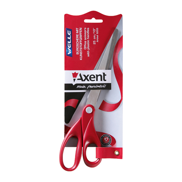 Офисные ножницы с пластиковыми ручками. Лезвия — из высококачественной стали. Ассиметричные кольца эргономичной формы обеспечивают удобство и комфорт в использовании. Закругленные кончики затуплены для безопасной работы. 10 лет гарантии на механизм.