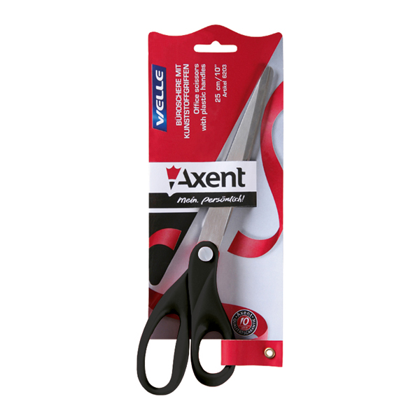 Офисные ножницы с пластиковыми ручками. Лезвия — из высококачественной стали. Ассиметричные кольца эргономичной формы обеспечивают удобство и комфорт в использовании. Закругленные кончики затуплены для безопасной работы. 10 лет гарантии на механизм.