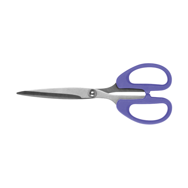 Ножницы с пластиковыми ручками. Лезвия — из высококачественной стали. Кольца эргономичной формы обеспечивают удобство и комфорт в использовании. Закругленные кончики затуплены для безопасной работы.