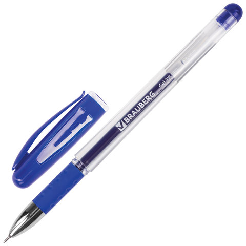 Ручка гелевая с грипом BRAUBERG "Geller", СИНЯЯ, игольчатый узел 0,5 мм, линия письма 0,35 мм, 141179