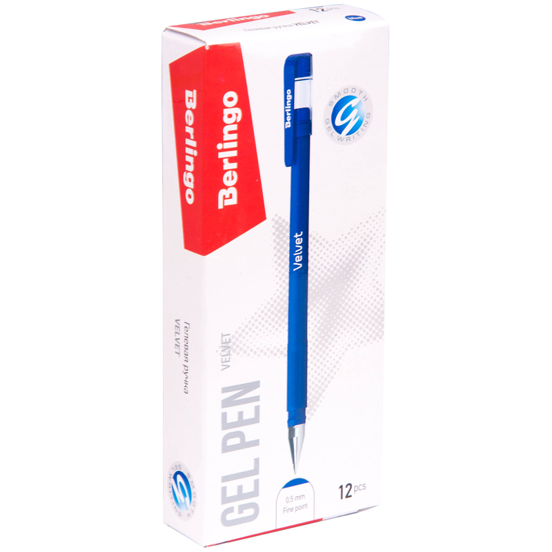 Ручка гелевая синяя 0,5 мм Berlingo "Velvet" прорезиненный корпус 243044