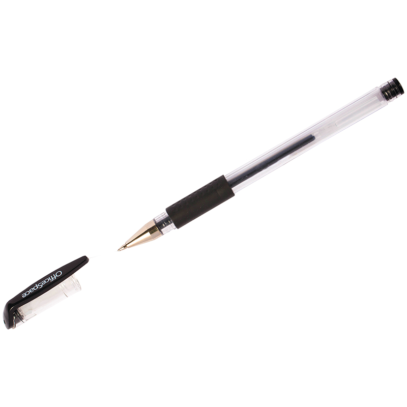 Ручка гелевая OfficeSpace черная, изготовлена из прозрачного гладкого пластика с резиновой манжетой для удобства письма. ручка оснащена прозрачным колпачком с удобным клипом, который позволит вам закрепить ручку как в кармане рубашки, так и на корешке ежедневника.