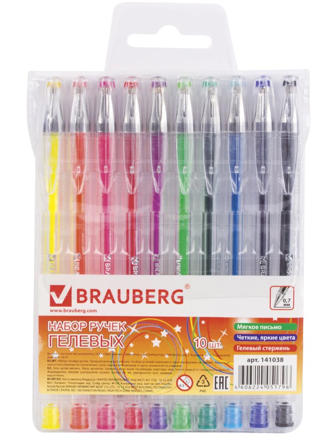 Ручка гелевая 0,7 мм, набор 10 штук, BRAUBERG "Jet" 141038