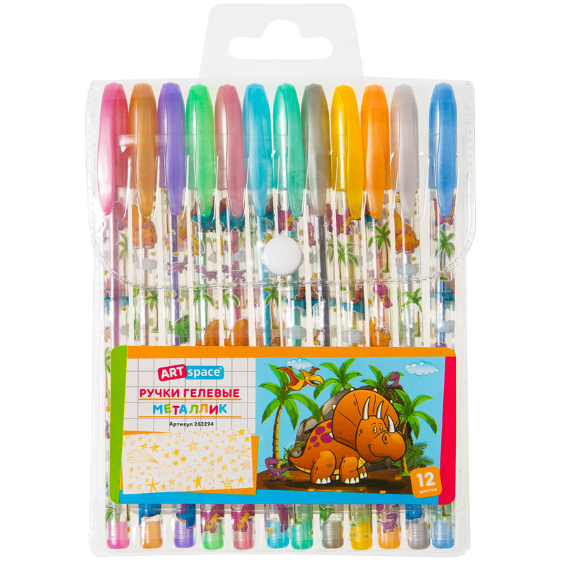 Ручка гелевая 1 мм, набор 12 цветов, "ДИНОЗАВРИКИ" ArtSpace металлик 263294