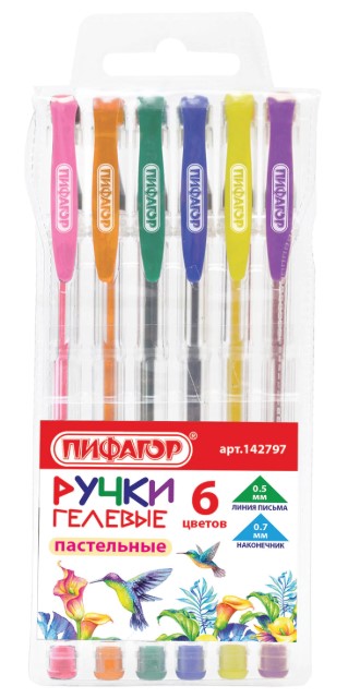Ручки гелевые набор 6 штук, узел 0,7 мм, линия письма 0,5 мм ПИФАГОР "ПАСТЕЛЬ" корпус прозрачный GP117