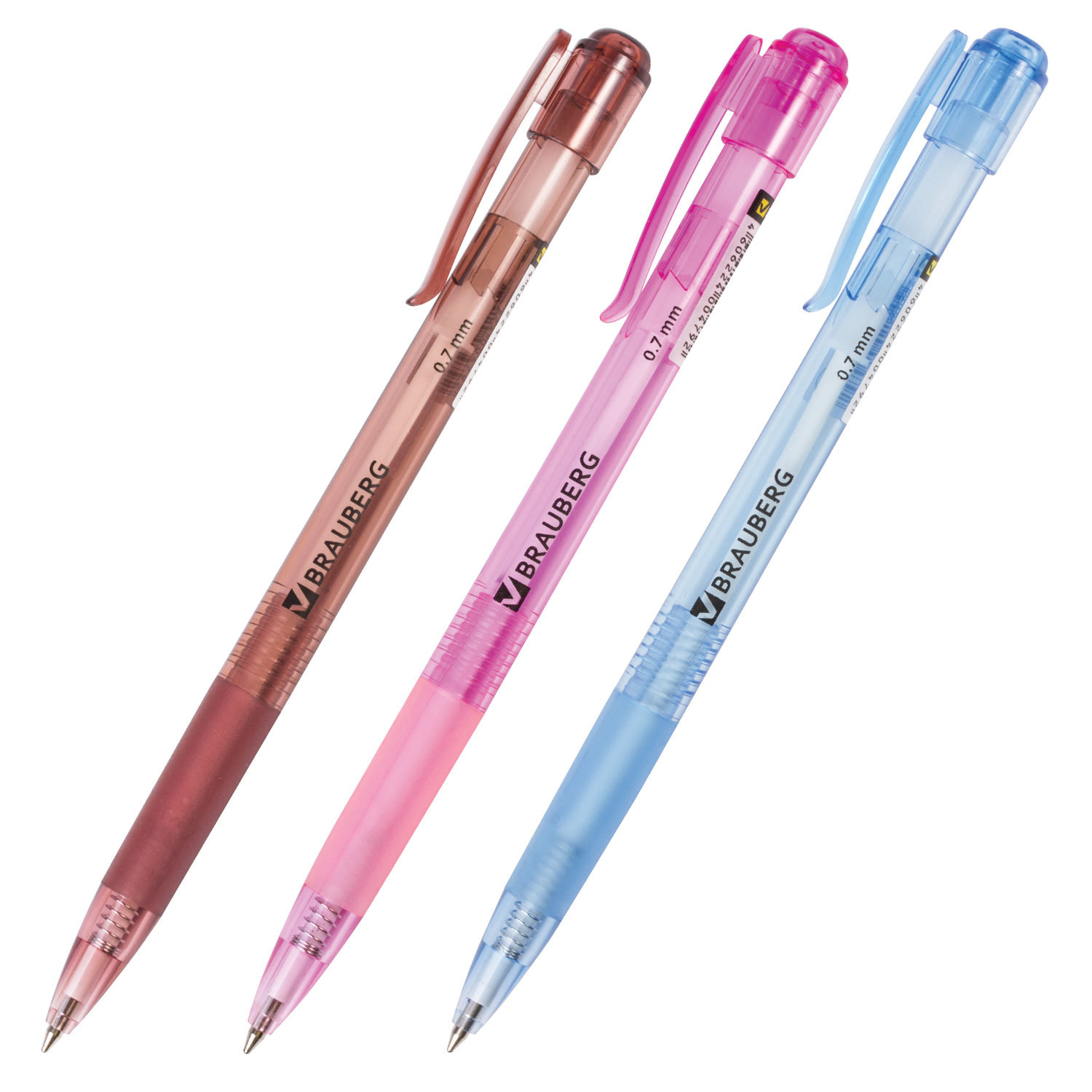 Ручка шариковая автоматическая с грипом BRAUBERG "Patrol", СИНЯЯ, корпус ассорти 24 штуки