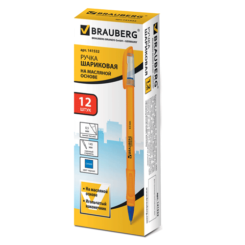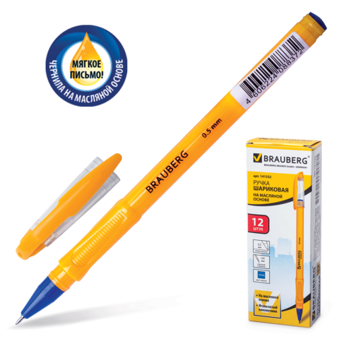 Ручка шариковая масляная синяя 0,5 мм, 12 штук, Brauberg "Oil Sharp"