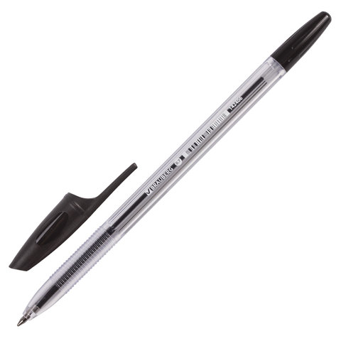 Удобная шариковая ручка эконом класса с прозрачным корпусом.