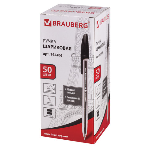 Ручка шариковая 0,7 мм Черная Brauberg X-333 20 штук прозрачный корпус