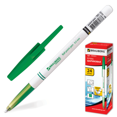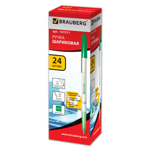 Ручка шариковая BRAUBERG 24 штуки офисная, зеленая