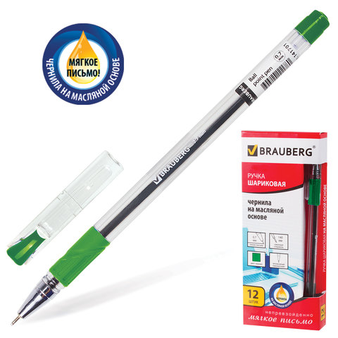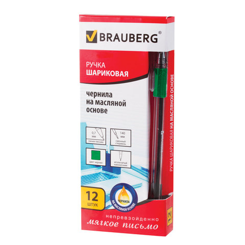 Ручка шариковая зеленая 0,7 мм 12 штук Brauberg Max-oil